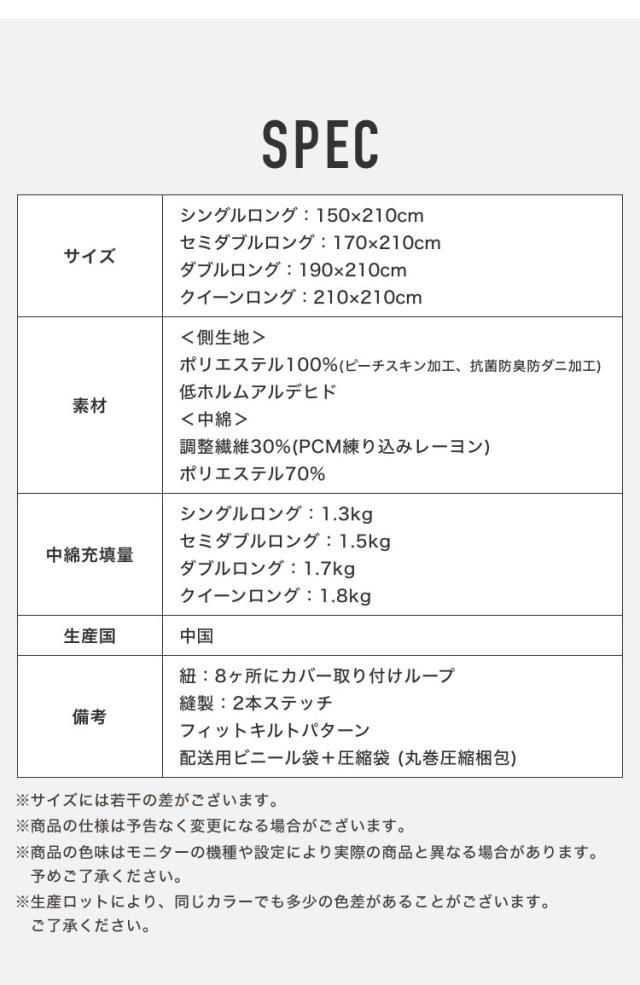 ポリエステル100%(ピーチスキン加工、抗菌防臭防ダニ加工)