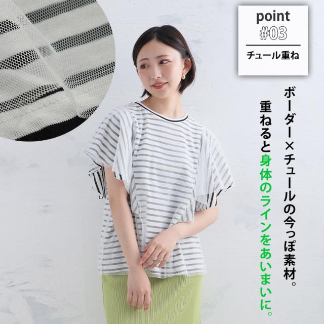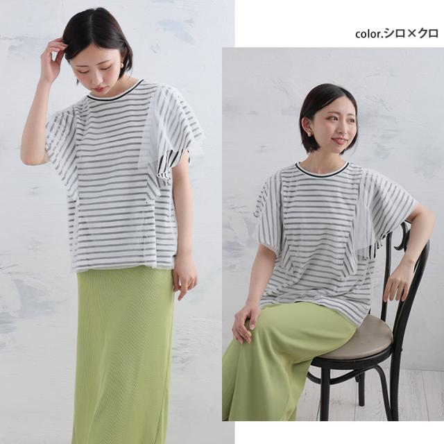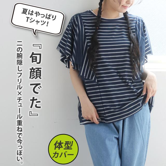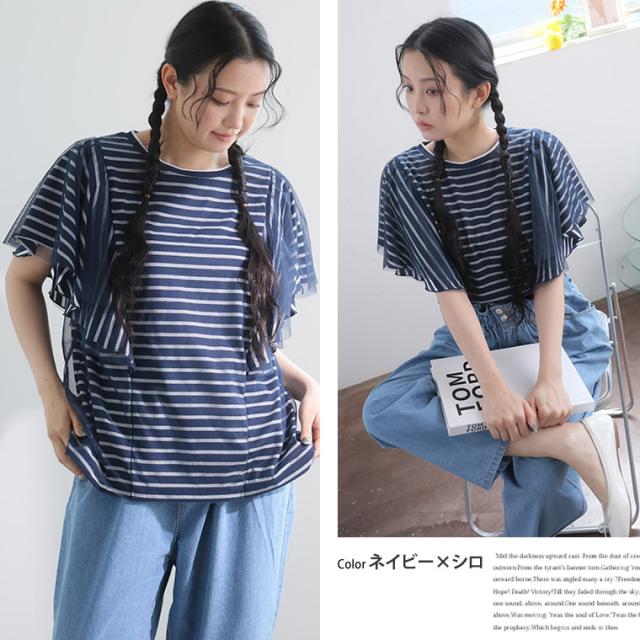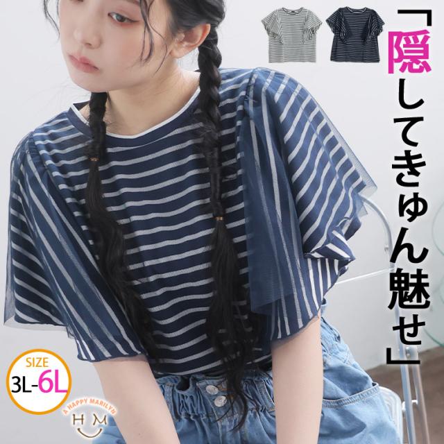 新作 大きいサイズ レディース トップス | チュール重ね ラッフル プルオーバー [861746] 3L 4L 5L 6L