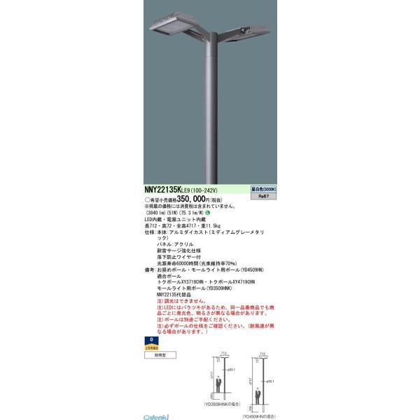 【個人宅配送不可】パナソニック Panasonic NNY22135KLE9 直送 代引不可・他メーカー同梱不可 LED街路灯灯具 8個昼白色