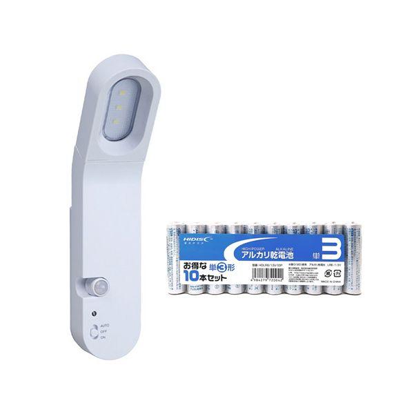 812824+HDLR6/1.5V10P 直送 代引不可 旭電機化成 マグネット付 くるっと回るセンサーライト ASL−3310 + アルカリ乾電池 単3形10本パックセット