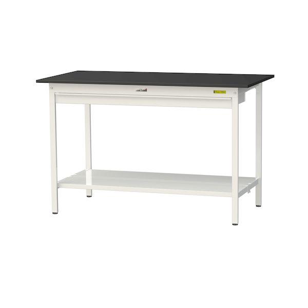 【商品説明】●リーズナブルな耐薬品仕様の作業台です。薬品に強いケミテクト天板は研究室・実験室に最適!ワイド引出し、全面棚板付き。