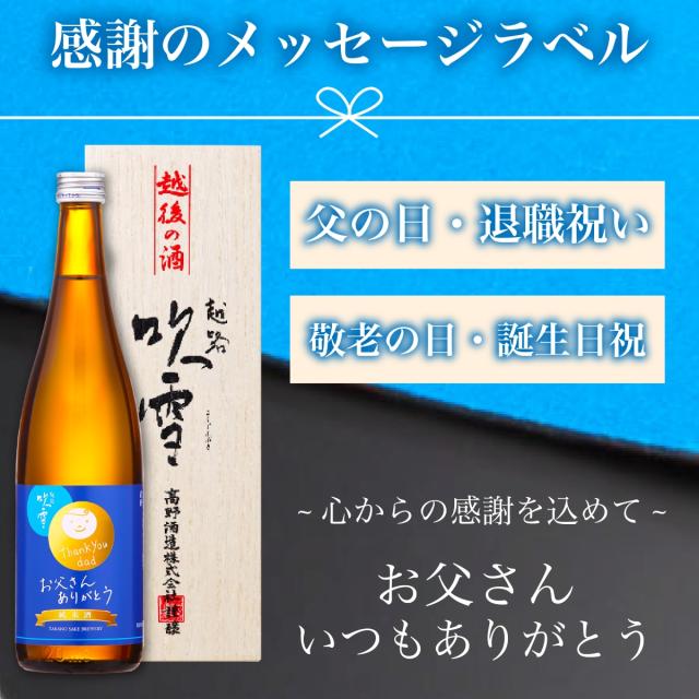 日本酒 純米酒 お父さん ありがとう 感謝メッセージラベル 越路吹雪 720ml 桐箱入 辛口 新潟 高野酒造 / 即日発送 送料無料 父の日 ギフト プレゼント 酒 お酒 日本酒 60代 70代 80代 父 親父 義父 贈り物 贈答 誕生日 記念日