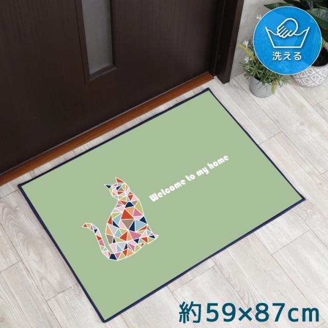 玄関マット 室内 おしゃれ 洗える キッチンマット アクセントマット イラスト マット かわいい 敷物 転写プリント TEN063 モザイクキャットグリーン
