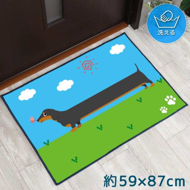 玄関マット 室内 おしゃれ 洗える キッチンマット アクセントマット イラスト マット かわいい 敷物 転写プリント TEN166 ダックスフント 空 雲 太陽