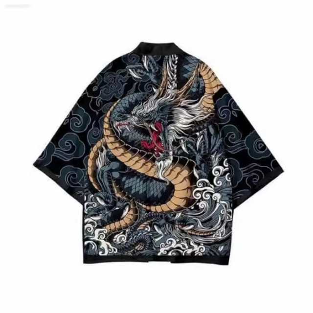 ブラック 男女兼用 龍柄 夏祭り 夏恋 寺 法被 羽織り 半纏 はんてん 法被 ハッピ 長半纏 半天 袢天 半被 お祭り衣装 雅 和柄 羽織 和装 ユニセックス 浴衣 着物 はっぴスタイル かっこいい かわいい 風物詩 個性的 おしゃれ S~6XL 大きいサイズあり 半ズボン