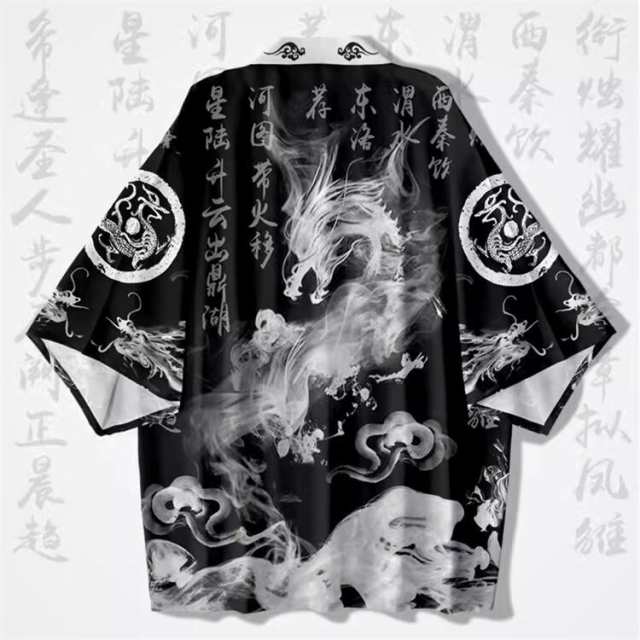 法被 羽織り 中国風 ブラック ホワイト 男女兼用 夏祭り 半纏 はんてん 法被 ハッピ 長半纏 半天 袢天 半被 お祭り衣装 雅 和柄 羽織 和装 ユニセックス 浴衣 着物 はっぴスタイル かっこいい かわいい 風物詩 個性的 おしゃれ フリーサイズ