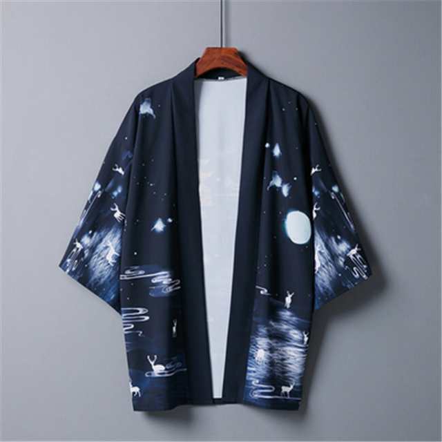 ブラック 男女兼用 鹿柄 夏祭り 夏恋 寺 法被 羽織り 半纏 はんてん 法被 ハッピ 長半纏 半天 袢天 半被 お祭り衣装 雅 和柄 羽織 和装 ユニセックス 浴衣 着物 はっぴスタイル かっこいい かわいい 風物詩 個性的 おしゃれ S/M/L/XL/XXL/XXXL