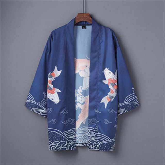ブルー 鯉柄 男女兼用 夏祭り 夏恋 寺 法被 羽織り 半纏 はんてん 法被 ハッピ 長半纏 半天 袢天 半被 お祭り衣装 雅 和柄 羽織 和装 ユニセックス 浴衣 着物 はっぴスタイル かっこいい かわいい 風物詩 個性的 おしゃれS/M/L/XL/XXL/XXXL