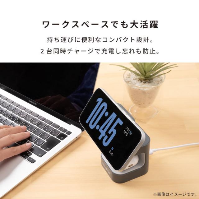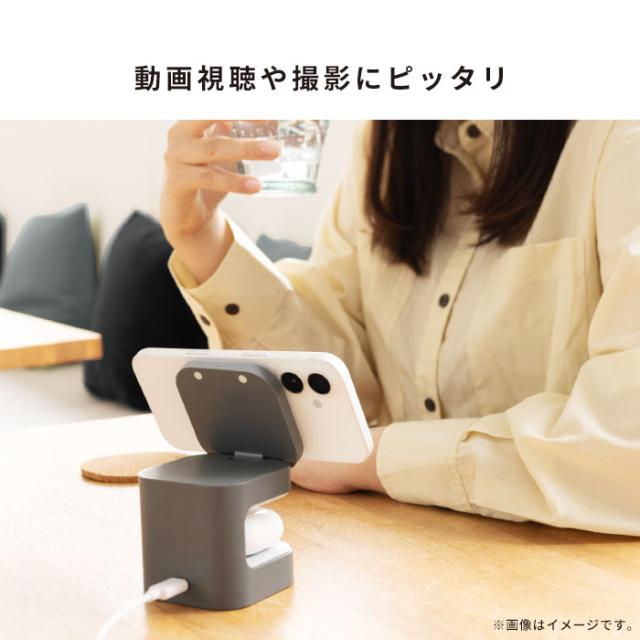 コンパクトなデザインでデスク周りもスッキリ。これ1台でiPhoneとAirPodsを同時に充電が可能。