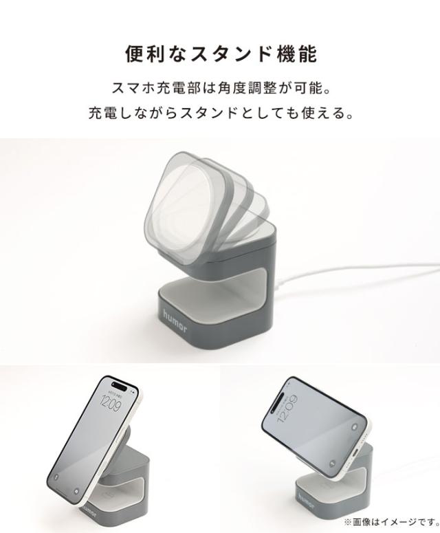 humor Qi2対応 2in1 ワイヤレス充電器 【 iPhone AirPods 2台同時 急速充電 コンパクト 置くだけ 充電 マグネット qi2 充電スタンド スマホ スタンド 縦 横 角度調節 おしゃれ くすみカラー ユーモア Hamee 】