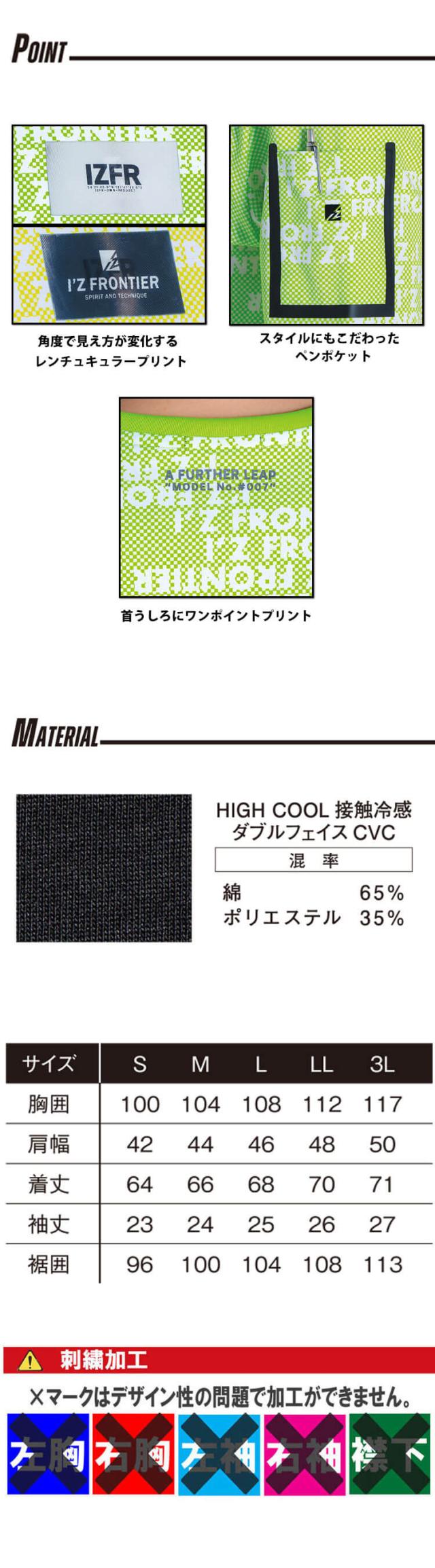 [即納]アイズフロンティア IZ FRONTIER 接触冷感ダブルフェイスCVC半袖クルーネックシャツ 007 春夏 2025年春夏新作