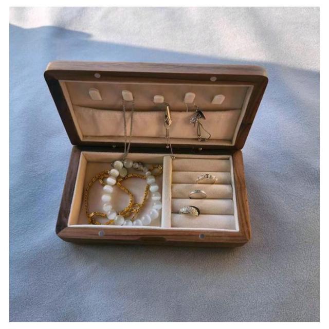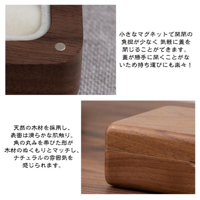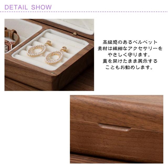 | 上品で高級感を漂うアクセサリーケース。ジュエス 木製 天然の木材を採用し、表面は滑らかな肌触り。角の丸みを帯びた形が木材のぬくもりとマッチし、ナチュラルの雰囲気を感じられます。 高級感のあるベルベット素材は繊細なアクセサリーをやさしく守ります。蓋を開けたまま展示することもお勧めします。 小さなマグネットで開閉の負担が少なく 気軽に蓋を閉じることができます。蓋が勝手に開くことがないため持ち運びにも楽々! コンパクトで軽量!木素材なのに、持ち運びも便利! | |