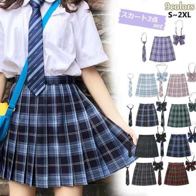 制服 スカート 3点セット チェック柄 レディース かわいい プリーツスカート 膝上 ミニスカート チェックスカート リボン付き 学生服 スクール 学生女子高生9色