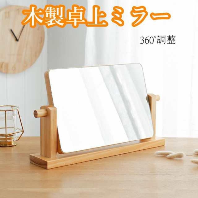 スタンドミラー 卓上ミラー おしゃれ 鏡 ミラー 卓上鏡 木製 インテリアリン 生活雑貨 360度の回転式
