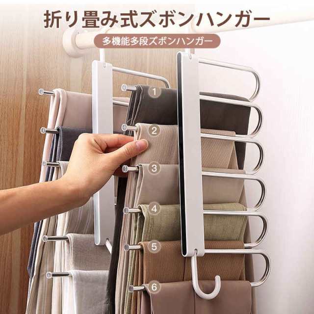 かさばるズボンをハンガーでまとめて収納できる便利な商品です。