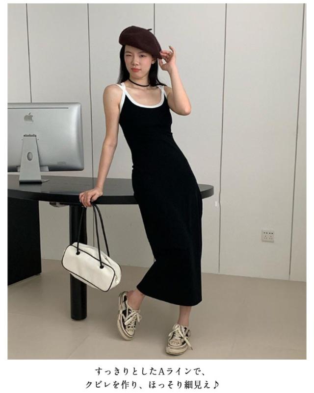 | カップ付きでインナー選びに悩まない! 「後ろ姿もお洒落」バッククロス&アメスリワンピース トレンドのアメスリデザインを施した、モードなロングワンピース。 二重の華奢なストラッブが後ろ姿までお酒落に見せてくれます。 すっきりとしたAラインで、クビレを作り、ほっそり細見え♪ 肌当たりやわらかな素材で身体のラインを拾い過ぎず、ストレスフリーな着心地も魅力。 ヘルシーにサンダルやスニーカーとの組み合わせも高相性◎ 一枚ではもちろん、シャツやカーデを羽織ったスタイリングがおすすめです。 リラクシーながらも、リゾートワンピとしても着映えるアメスリワンピースです。 | |