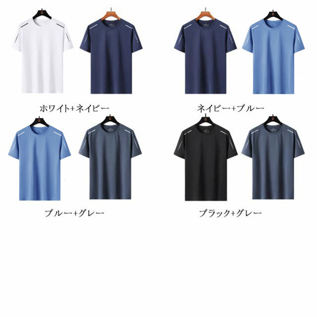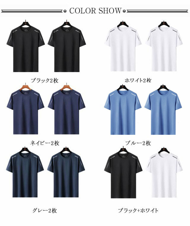 2枚セット!接触冷感 Tシャツ ティーシャツ メンズ 半袖 夏 2枚セット!接触冷感 シンプル 吸汗速乾 トップス 大きいサイズ カジュアル クール 夏用 涼しい メッシュ スポーツ 作業服 作業着 ランニング 男性 夏服