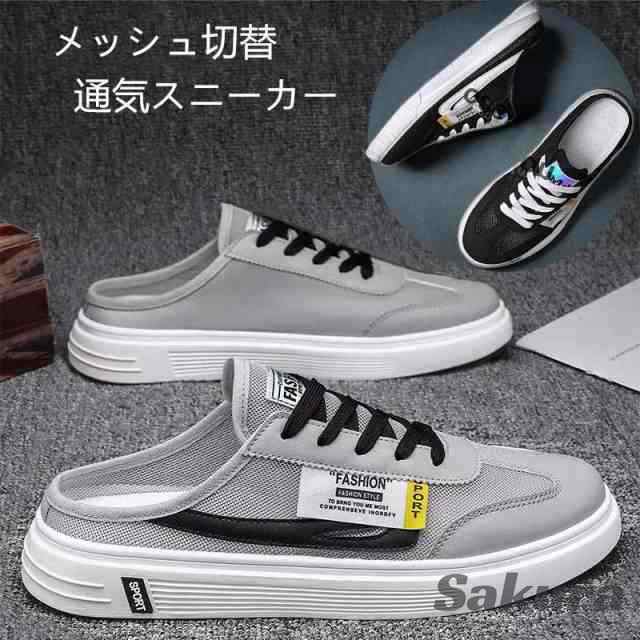 スニーカー メンズ かかとなし サボサンダル メッシュ切り替 スリッポン ローカット レースアップ 軽量 通気 履きやすい クロッグ スリッパ バブーシュシューズ