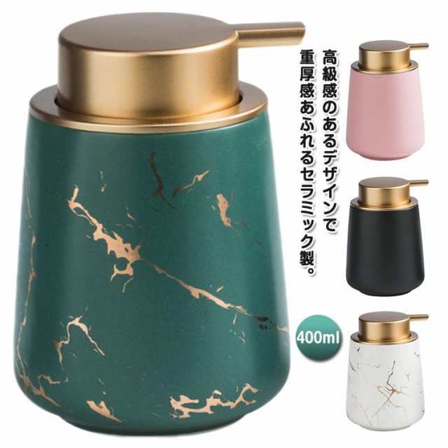 | 高級感のあるデザインで重厚感あふれるセラミック製。 手洗いやキッチン、お風呂場などで、使用することができ、インテリアにも合わせやすくなっています。 内側はツルっとして洗いやすい質感。 きれいを保てるので衛生面でも安心です。 口径が大きく注ぎやすい。 さっと楽に詰め替えできます。 ※ソープを満タンに入れると容器から溢れ出ることがありますので、容量表記より少なめに入れるようにしてくさい。 | |