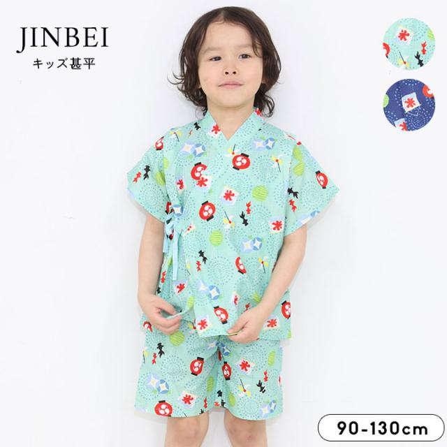甚平 男の子 子供 おしゃれ 綿100% キッズ 服 90cm 100cm 110cm 120cm 130cm 半袖 夏 ベビー キッズ 部屋着 ウエストゴム 夏祭り 秋祭り 盆踊り お盆 七夕 イベント 紺 グリーン 花火 送料無料