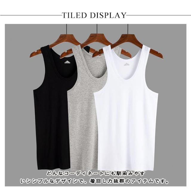 タンクトップ メンズ 肌着 下着 Uネック トップス タイトフィット インナー ノースリーブ 吸汗速乾 3枚組 無地 ストレッチ アンダーウェア 大きいサイズ 送料無料