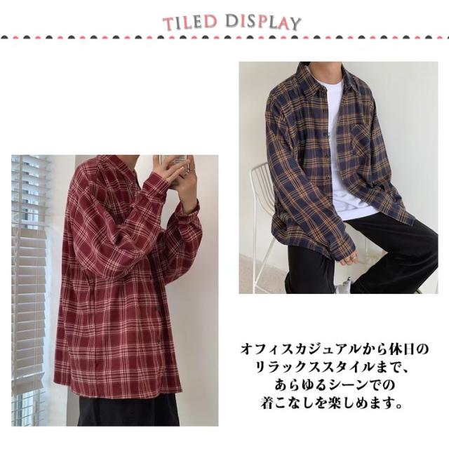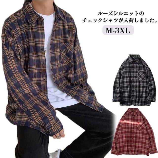 チェックシャツ メンズ カジュアルシャツ チェック柄 長袖シャツ シャツジャケット ップス 長袖 羽織り ジャケット オーバーサイズシャツ ギンガムチェック 柄シャツ レッド ブラック イエロー 春秋 大きいサイズ