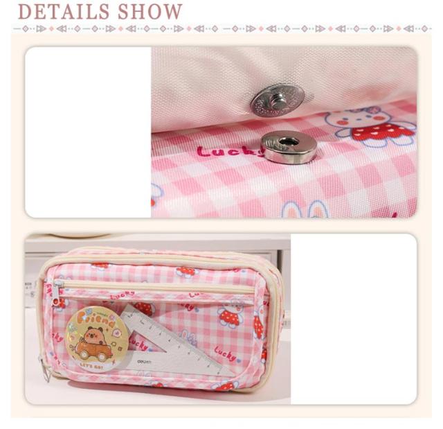 | 透明窓付きのデザイン、好きな芸能人や、アニメの写真 、缶バッジなど入れることができます。簡単に世界中一つだけ自分のペンケースは完成します。 毎日楽しく使えます。 レディース、メンズ、男女兼用、子供、小学生、中学生、高校生、大学生、大人にも適用します。 持ち手が付いているので持ち運びにも便利で、バッグなどからの取り出しにも便利です。 容量が大きく、散在するさまざまな小物を簡単に分類できます。小学生から高校生まで幅広く愛されるデザインです、自分で使うのがもちろん入学、進学、誕生日のプレゼントや入学プレゼントなどとしても最適で、きっと喜ばれます。 | |