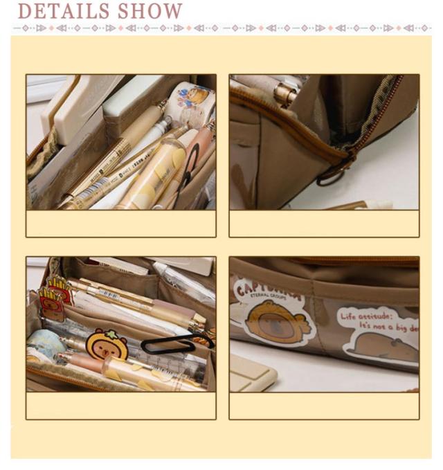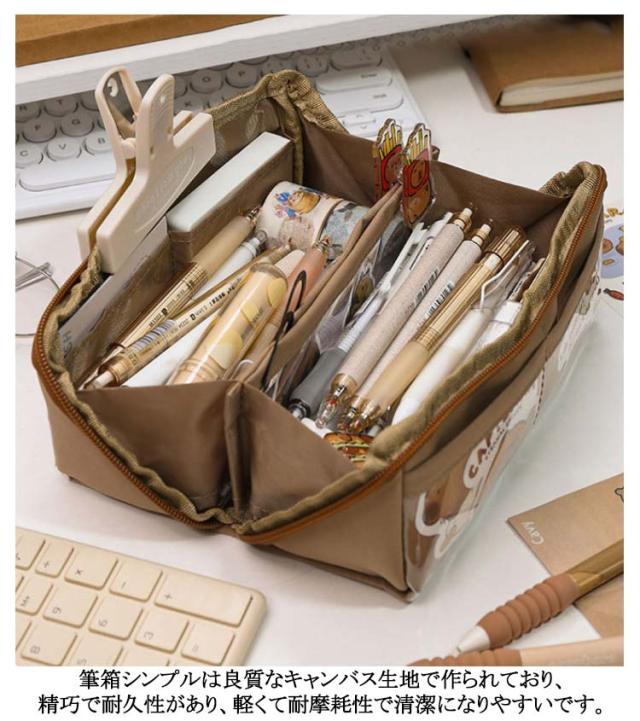 | 外側の透明ポケット部分にまでたっぷり収納できる、大容量ペンケース! トレンドの韓国っぽさたっぷりで可愛いペンケース 筆箱シンプルは良質なキャンバス生地で作られており、精巧で耐久性があり、軽くて耐摩耗性で清潔になりやすいです しっかりとした生地と豊富カラーがおしゃれ! ペンなどの文房具やメイクブラシなど収納できます | |