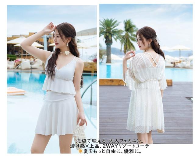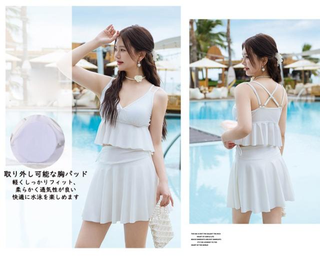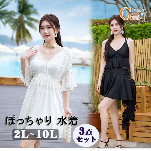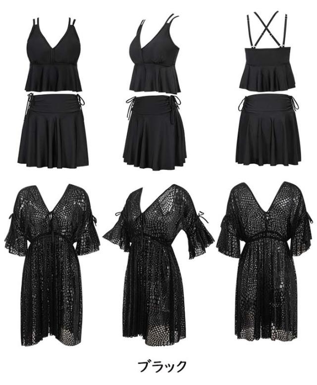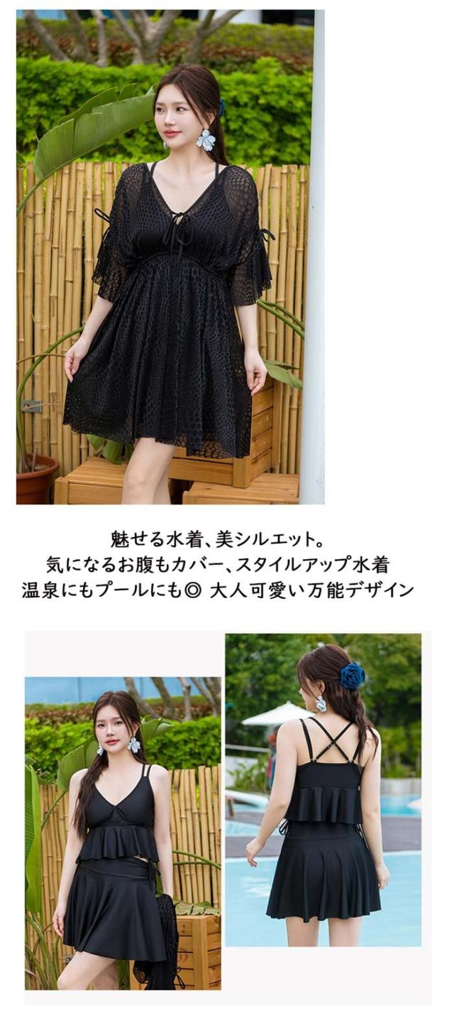 水着 レディース ぽっちゃり 体型カバー水着 大きいサイズ 20代 30代 40代 スモック付き 黒 白 オトナ女子 可愛い おしゃれ かわいい 大人 女性用