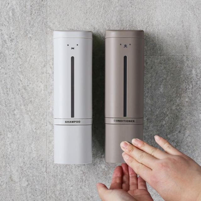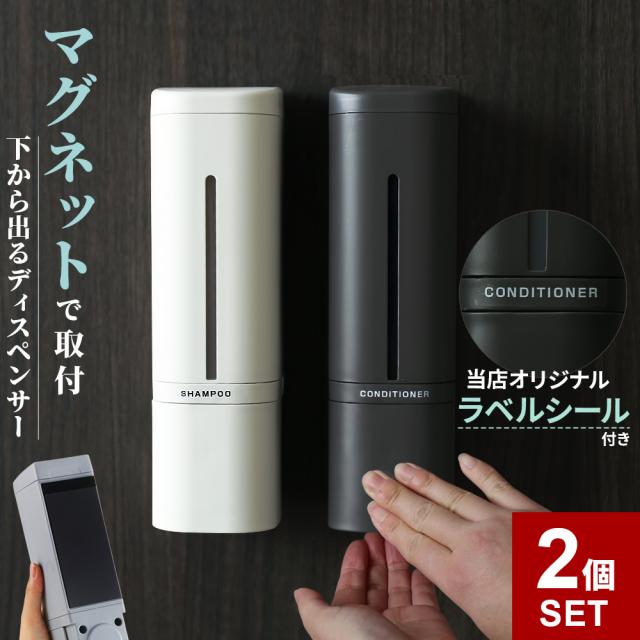 hover 下から出るマグネットディスペンサー リキッド 2個セット 500ml | シャンプーボトル 詰め替え 磁石 入れ替え 液体 ボトル 容器 ポンプ プッシュ ボタン 風呂 壁面 浮かせて 浴室 トリートメント リンス ミッフィー ボリス