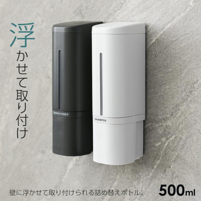 【2024年改良版】壁に浮かせて取り付けられる詰め替えボトル。揃えてスッキリ【2個セット】+オリジナルラベルシール付き