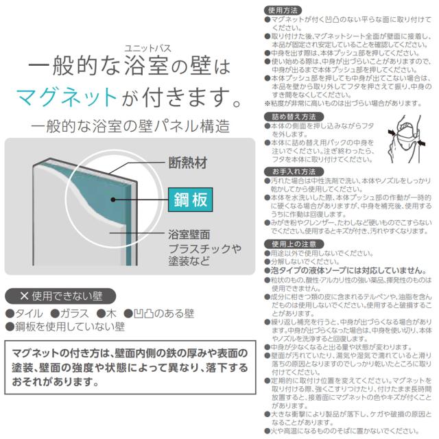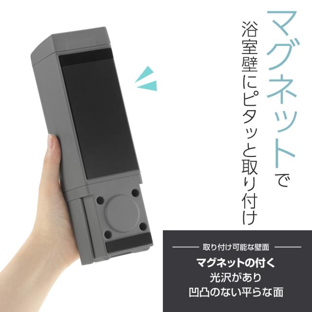 マグネットで取り付けマグネットの付く浴室壁に設置できます。お好みの場所にペタッと取り付けるだけのカンタン設置。