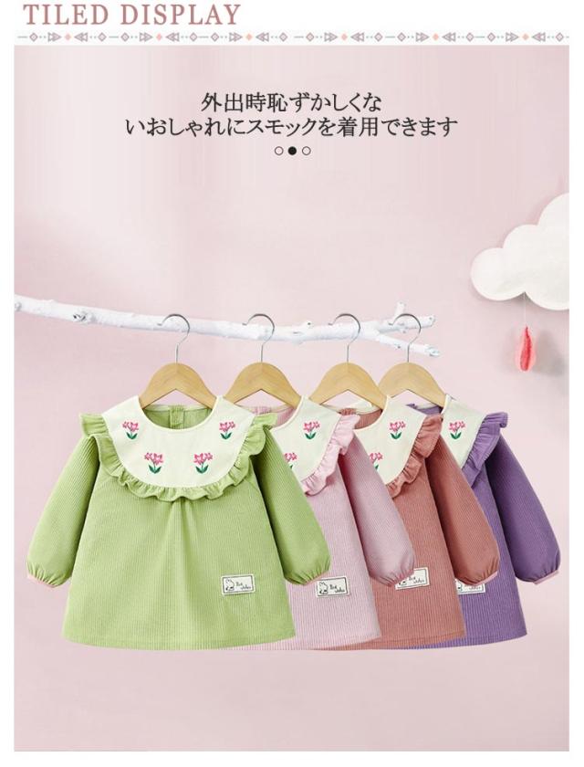子供 スモック 長袖スモック ブラウス お食事 可愛い お砂場着 ベビースモック 幼稚園 汚れ防止 フリル 刺繍 お食事 秋冬 汚れ防止 絵画 エプロン 外遊び スモック 女の子 保育園 砂遊び 赤ちゃん 幼児 防水エプロン 子供服 春 外遊び ギフト 送料無料 90 100 110 120 130