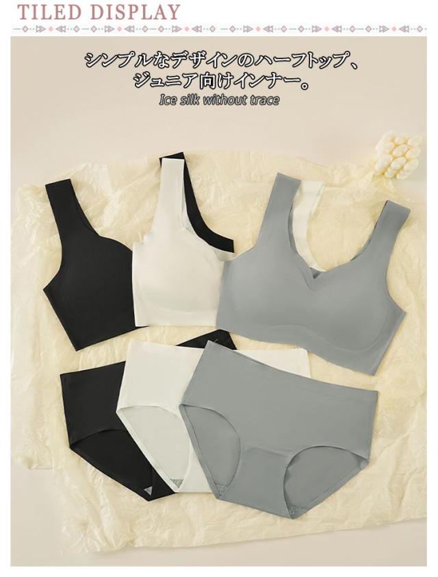 無地 キッズ アンダーウェア パッド付き カップ付き ブラジャー 子供 可愛い 上下セット*2組 ノンワイヤー 冷感 ブラ インナー 接触冷感 涼しいブラ 夏 シームレス 大人 女の子 パンツ 肌着 ブラジャー ジュニアブラ スポーツブラ 中学生 下着 ショーツ