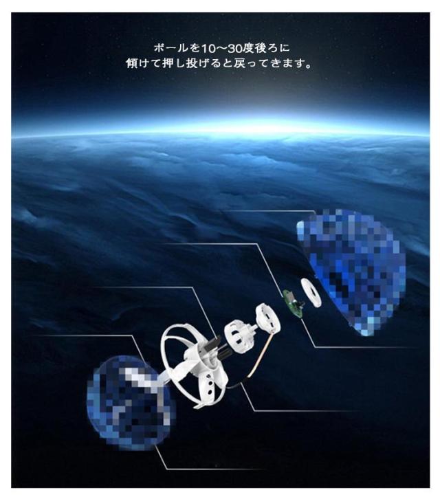 | 飛ぶ!回る!LEDで光る!フラィングポール ボールを手のひらの上に放しゆっくりと手を移動させるとボールが手のひらの上を移動します☆ ボールを10〜30度後ろに傾けて押し投げると戻ってきます。 | |