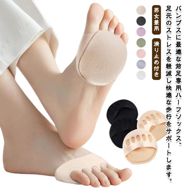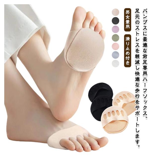 ハーフソックス レディース 靴下 つま先保護クッション フットカバー パンプス用ソックス 半敷きインソール 前滑り防止 つま先クッション 滑り止め付き ハーフインソール パンプス用 蒸れない 男女兼用 ハーフカバー 通気性 薄手 サンダル用