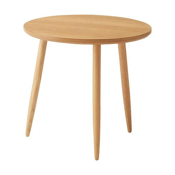 いろいろな使い方ができる2typeのテーブル ナチュラルな空間を演出する2typeのテーブル。木目が美しいホワイトオークを使用しています。それぞれ、サイドテーブルやリビングテーブルとして使用するほか、SサイズとLサイズを組み合わせてネストテーブルとして使用すれば、リビングの空間もインテリア性が高く仕上がります。また、シンプルで細い三本の脚がテーブル全体をコンパクトに、足元をすっきりと広くみせてくれます。