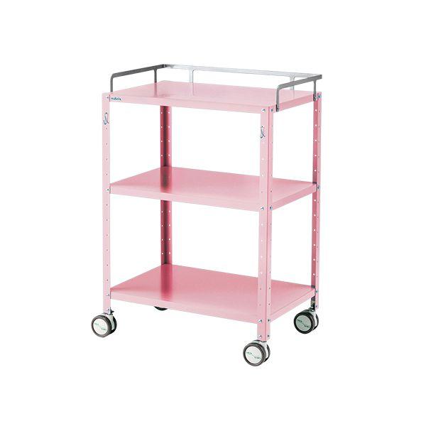 ●段数:3段 ※2段+追加棚板となります。●幅×奥行×高さ(mm)※:603×402×897 ※手摺含む●重量(kg):約8.8●色:ピンク●材質:ステンレス(SUS430)(アクリル焼付塗装)●有効作業面寸法:597×397mm●キャスター:Φ75mmウレタン製(ストッパー無し)●棚間隔:約50mmピッチで調節可能●耐荷重:約20kg/段●組み立て式(要工具)●交換用キャスター:ナビスキャスターΦ75 M8ネジ S無し(品番/0-1513-01-01)