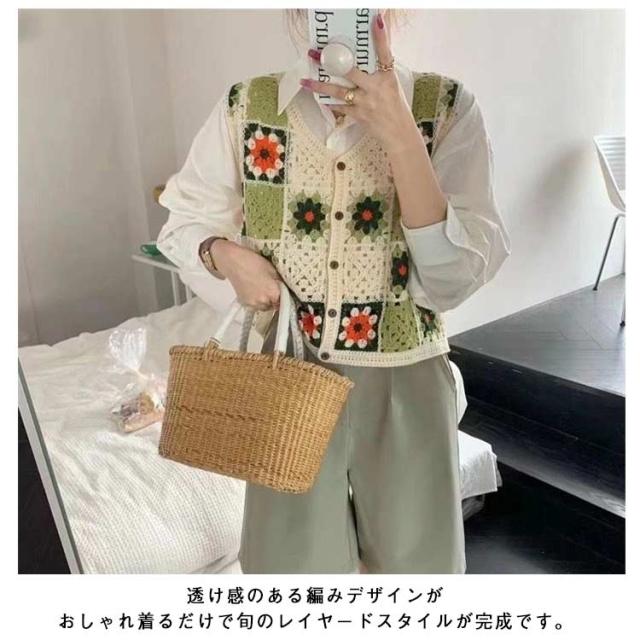 | トレンドの透かし編みでインナーとのレイヤードスタイルを楽しめるベスト。 繊細なレース模様とほど良い透け感が魅力。 透け感のある編みデザインがおしゃれ着るだけで旬のレイヤードスタイルが完成です。 半袖シャツ、ドレス、ブラウス、ジーンズ、スカートなどと組み合わせれば、毎日のリールになります。 カジュアルな日常着、毎日の仕事、ストリート、休暇、旅行、パーティー、集まり、クラブ、クラブなどに適しています。 | |