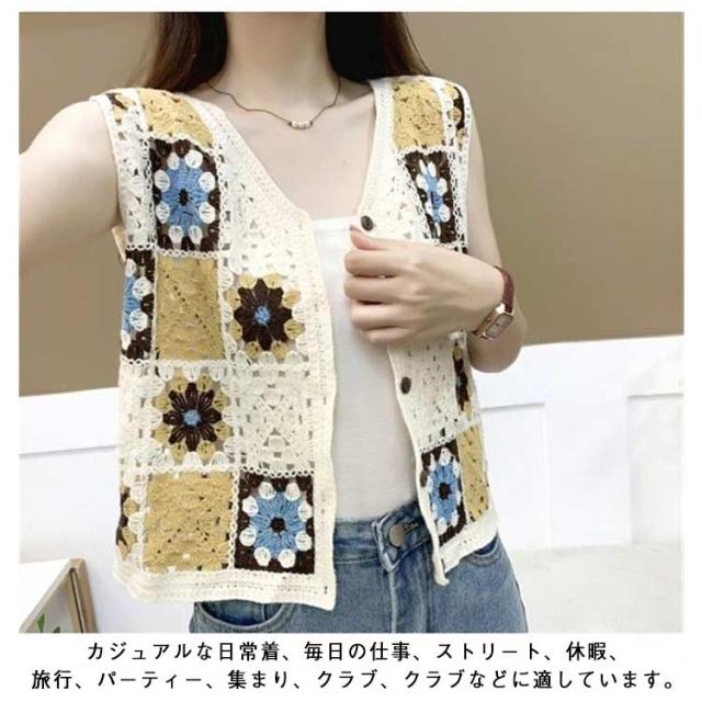 ベスト ジレ レディース 春夏 柄 前開き かぎ針 ニット かぎ編み 透かし編み 前開きベスト 無地 ニットベスト サマーニット 袖なし 薄手 体型カバー 大きいサイズ レイヤード ゆったり シンプル きれいめ 重ね着 春物 夏物 20代 30代 カジュアル