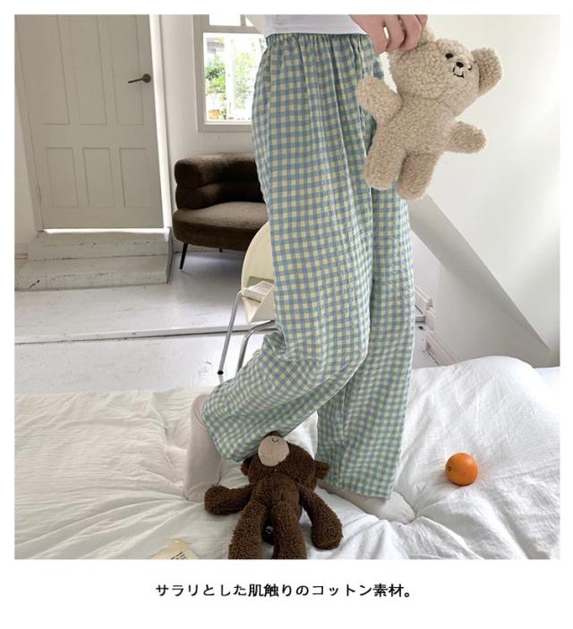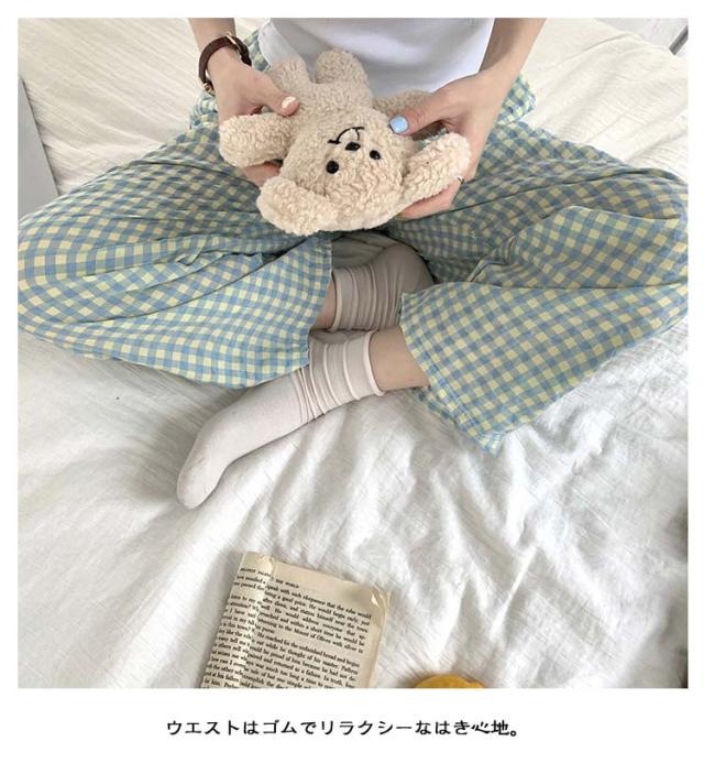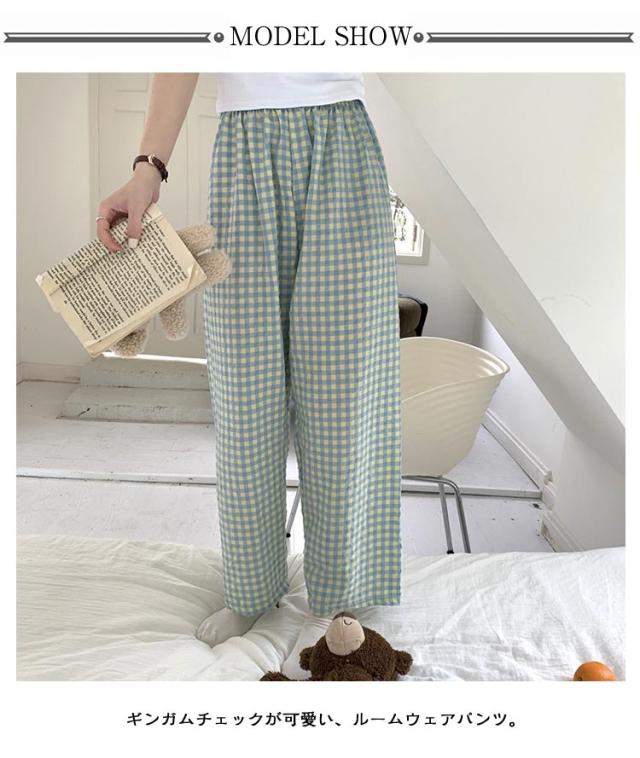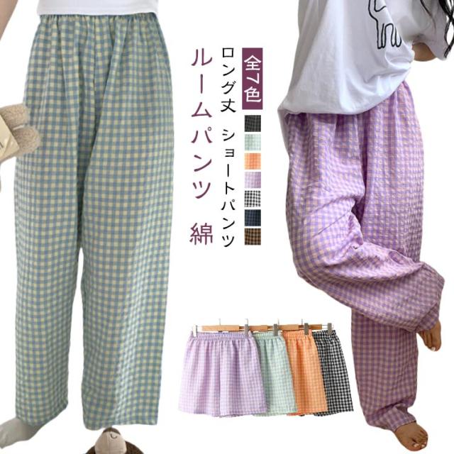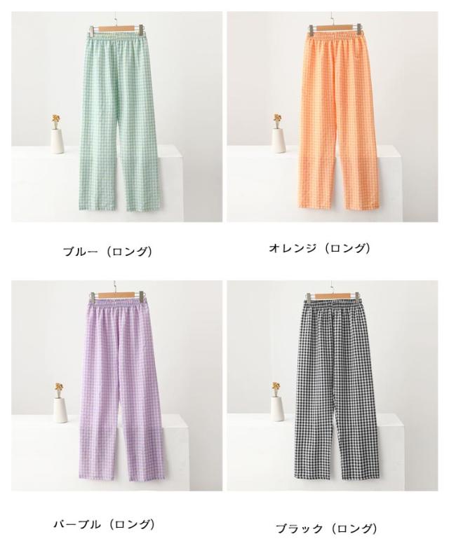 ルームパンツ パンツ レディース ギンガムチェック リラックスパンツ ルームウェア かわいい ズボン イージーパンツ ロングパンツ ショートパンツ 2タイプ ゆったり 部屋着 パジャマ 綿 コットン ロング丈 10分丈 薄手 パジャマ下 ボトムス 送料無料