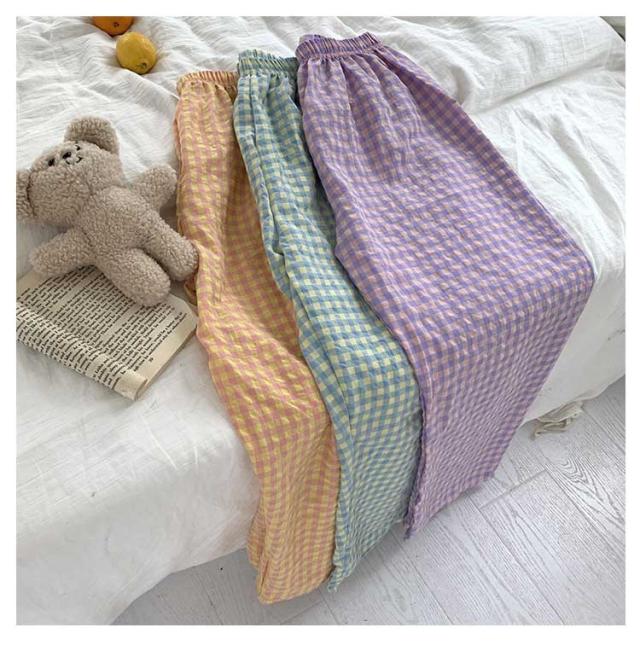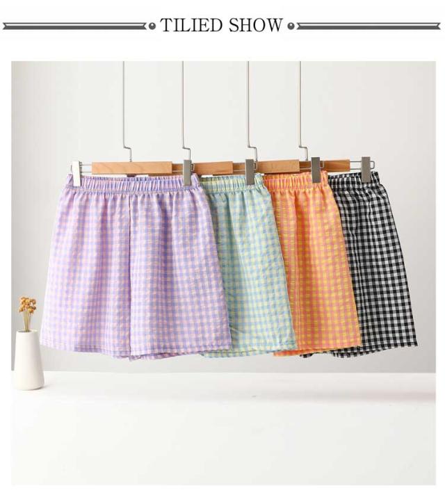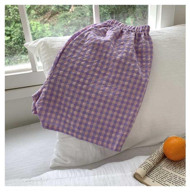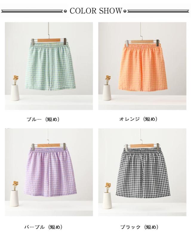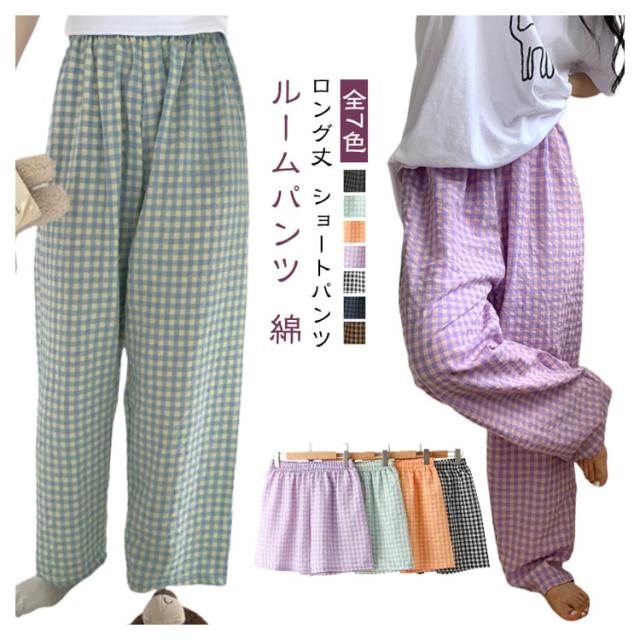 | 【ルームパンツ】【綿】【全7色】【ロング丈】【ショートパンツ】 ギンガムチェックが可愛い、ルームウェアパンツ。 サラリとした肌触りのコットン素材。 ウエストはゴムでリラクシーなはき心地。 一年中(春夏秋冬)とても着回しやすい便利なアイテム. お家でのリラックスタイムはもちろんお散歩やコンビニへのお買い物など、「ちょっとそこまで」ならそのまま外出しても大丈夫。 吸水&通気性に優れており、汗をかいてもさらっとしています。 | |