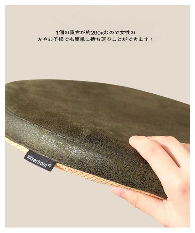 | ●4.5cmの極厚で長時間座ってもヘタらず疲れにくい! ●PU防水加工生地を使用しており、触り心地がいいです。ナチュラルさと上品さを演出します♪ ●1個の重さが約290gなので女性の方やお子様でも簡単に持ち運ぶことができます! | |
