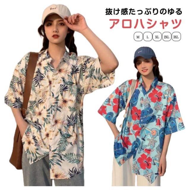 アロハシャツ レディース メンズ 半袖シャツ 柄シャツ カジュアルシャツ 五分袖 薄手 花柄 総柄 葉柄 ボタニカル シャツ サマーシャツ 大きいサイズ リゾート 男女兼用 旅行 結婚式 カップルコーデ ペアルック