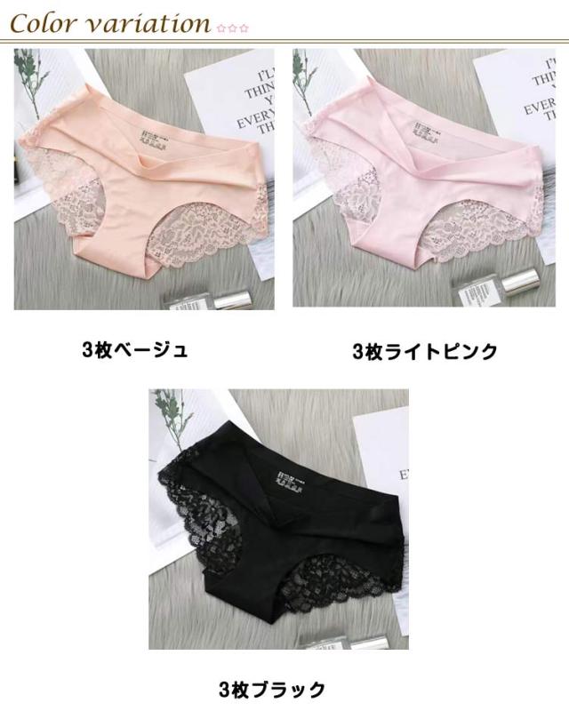 3枚セット シームレスショーツ ショーツ シームレス スタンダードショーツ バックレースショーツ レディース バックレース パンツ シンプル 3枚セット レース パンティー シームレスパンツ 無地 ノーマル インナー 女性用 下着