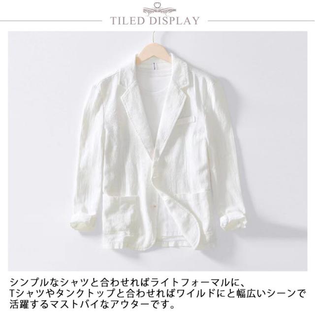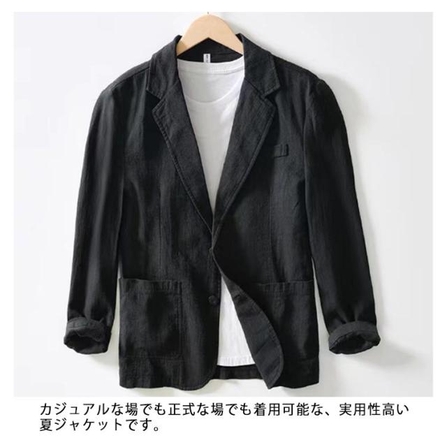 | シンプルなシャツと合わせればライトフォーマルに、Tシャツやタンクトップと合わせればワイルドにと幅広いシーンで活躍するマストバイなアウターです。 シンプルかつ洗練されたデザインでワンランク上の大人の魅力を演出します。 両側のポケットは非常に便利で、名刺やサインペンなどを置くことができます。 カジュアルな場でも正式な場でも着用可能な、実用性高い夏ジャケットです。通勤、通学、旅行、デート、レジャーなどに幅広く着用できます。 | |