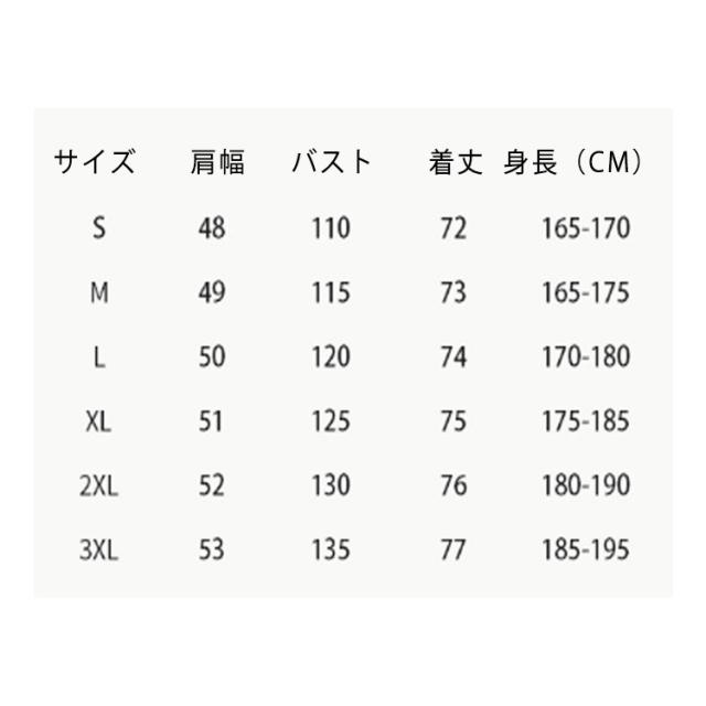 | サイズ | S M L XL 2XL 3XL |