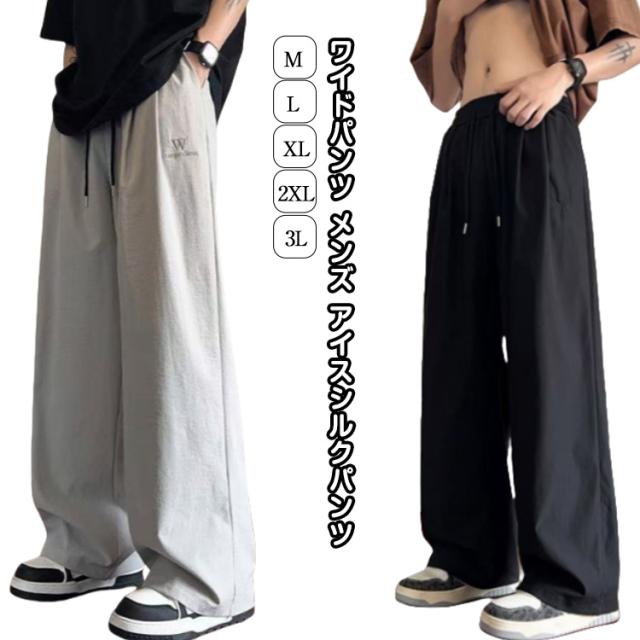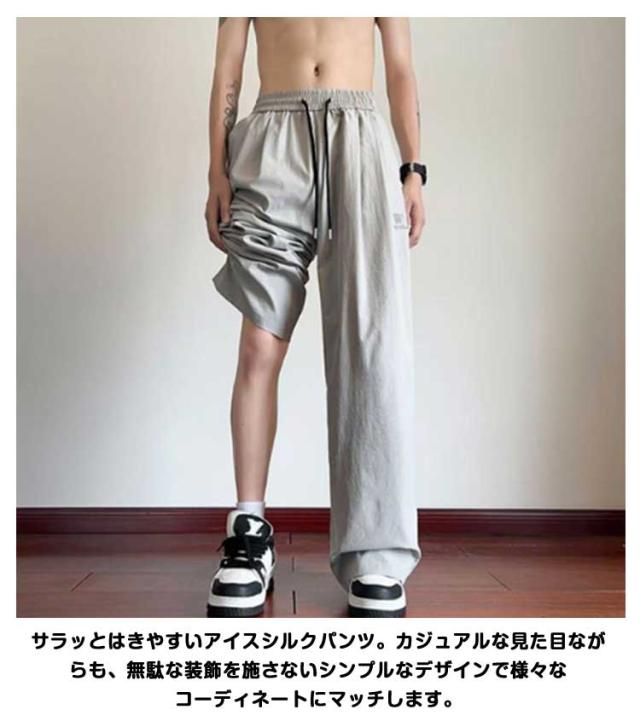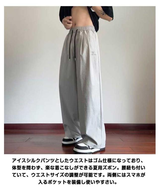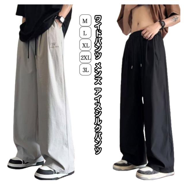 ワイドパンツ 夏用 ワイドパンツ 冷感パンツ アイスシルクパンツ メンズ メンズ 接触冷感 ズボン 涼しい スラックス ずぼん ボトムス 大きいサイズ ストレートパンツ オフィスカジュアル ロングパンツ