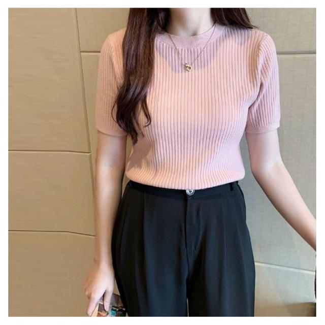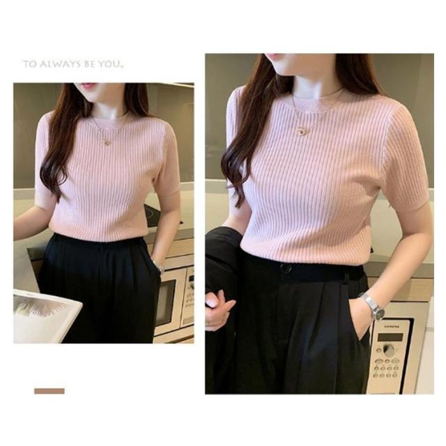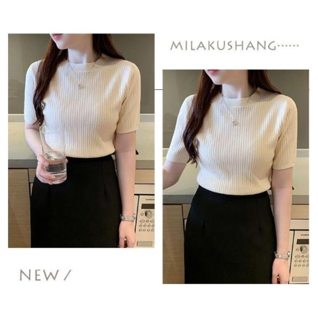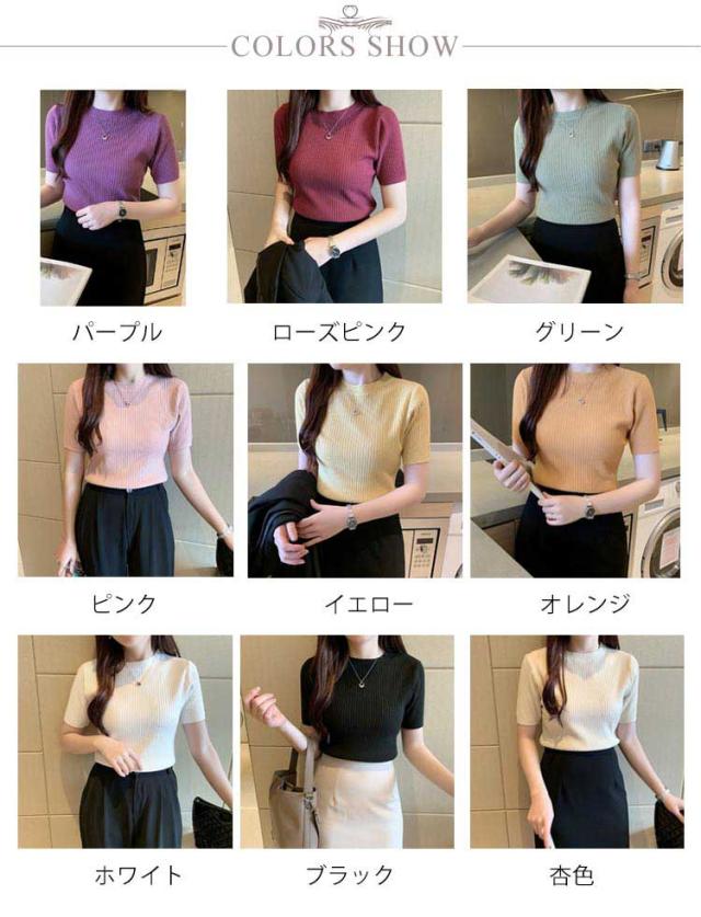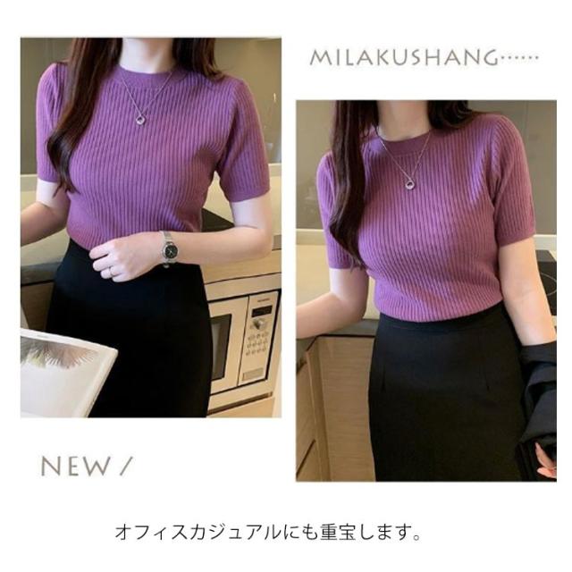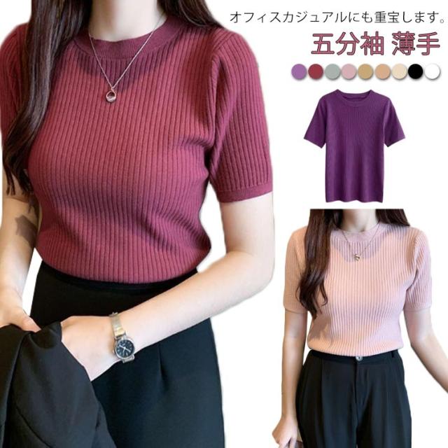 サマーニット ニット 半袖ニット オフィス 五分袖 トップス サマーセーター きれいめ リブニット レディース シンプル クルーネック ストレッチ 薄手 春 夏 秋 韓国 通勤 おしゃれ カジュアル サマーニット 20代 30代 40代 50代