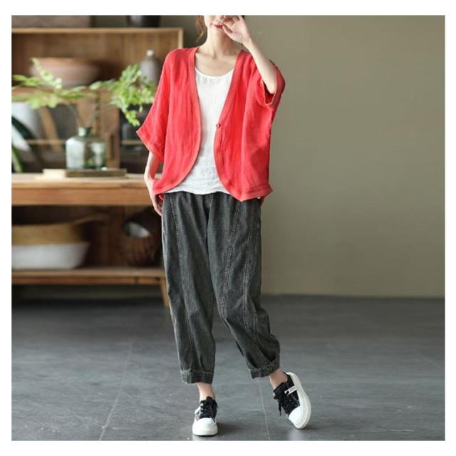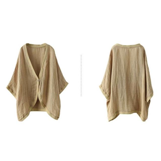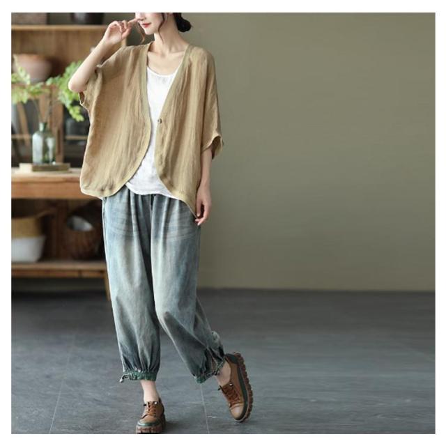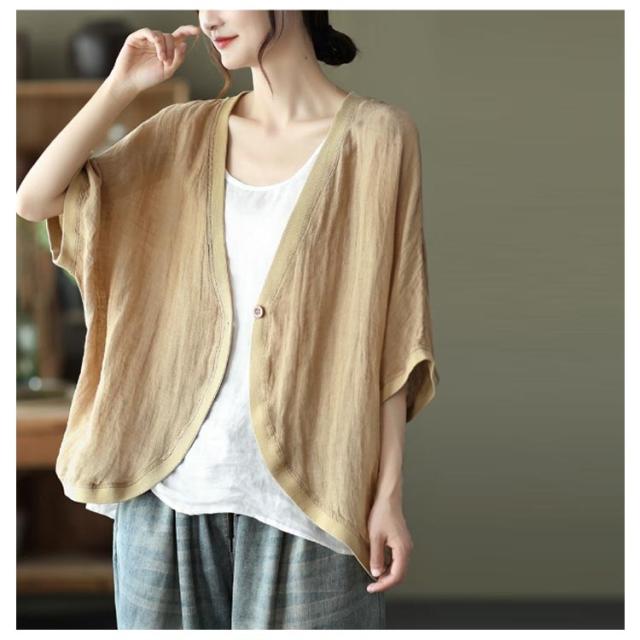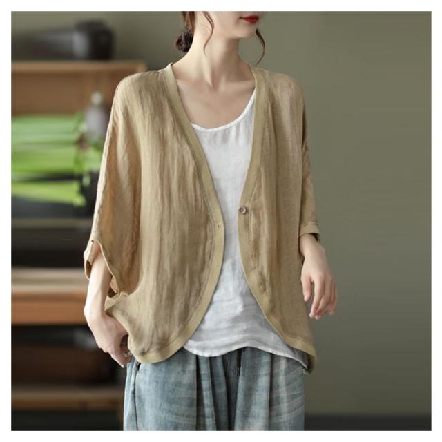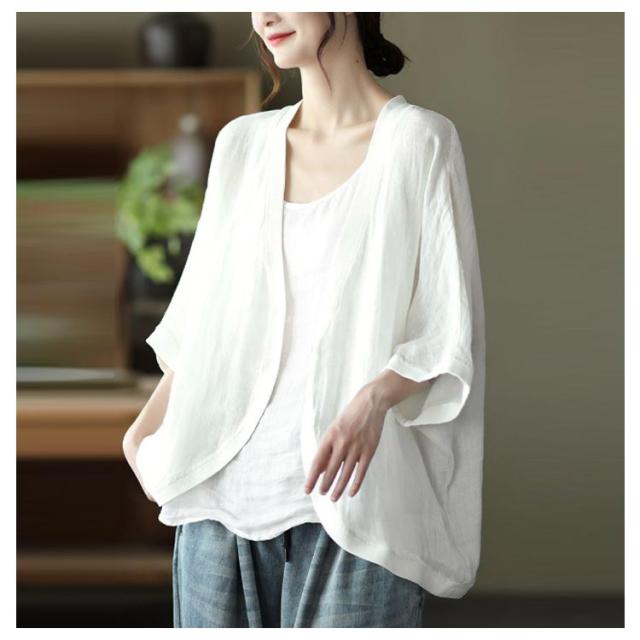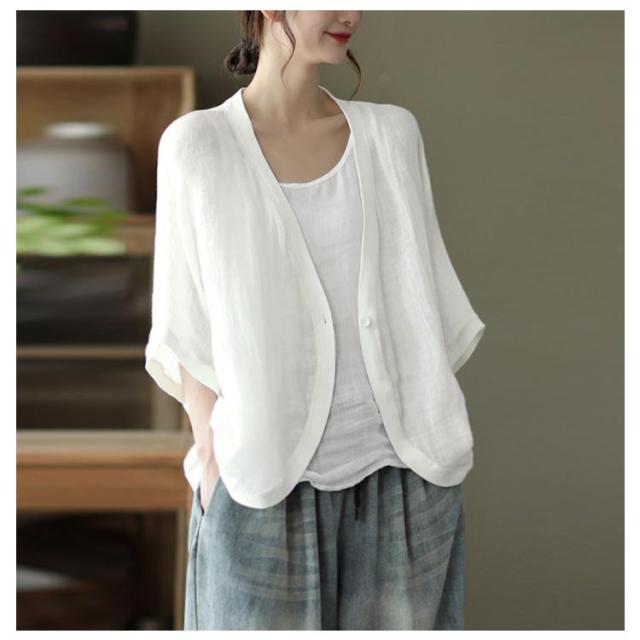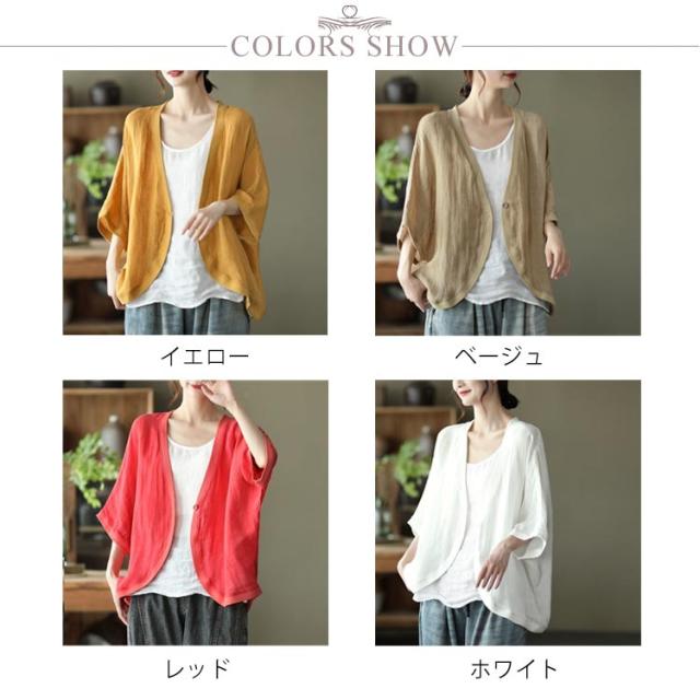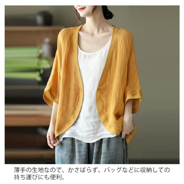 夏 春 シャツブラウス ショート シャツ 綿麻 可愛い 7分袖 リネン 40代 薄手 日焼け uvカット 冷房対策 日除け ボレロ レディース カーディガン ワンボタン 羽織り 涼しい ボレロカーディガン ゆったり カーディガン 50代 60代 30代 大人 女性